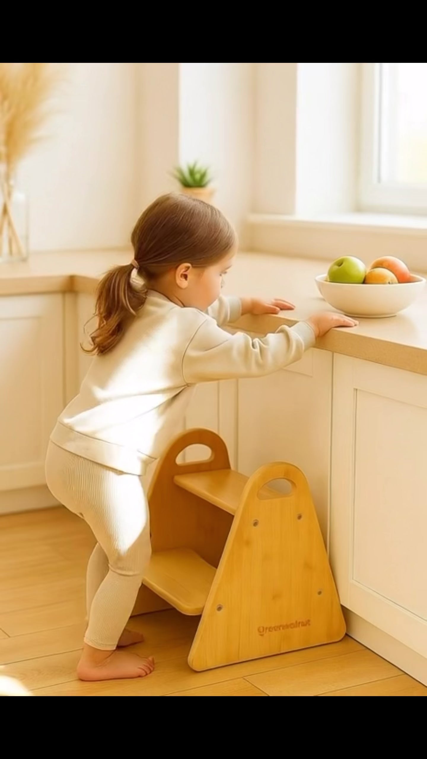 The two-step design helps toddlers and young children safely reach sinks, countertops, and shelves, making it perfect for kitchens, bathrooms, bedrooms, or playrooms. Rubber pads on the base prevent slipping and protect your floors from scratches.